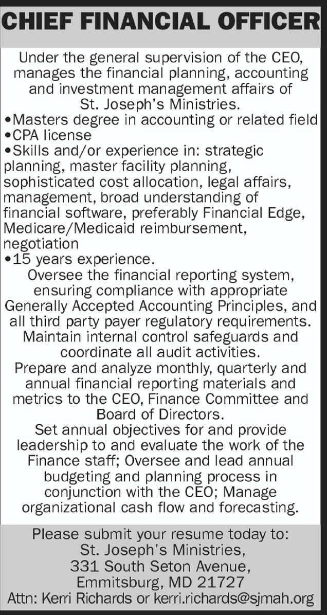 JOB SUMMARY: Under direction of the Director of Finance, the Payroll Staff Accountant provides professional accounting services of a specific, technical, sensitive, and/or confidential nature. Prince Frederick, MD 20678 410-535-1700 ... Content Retrieval